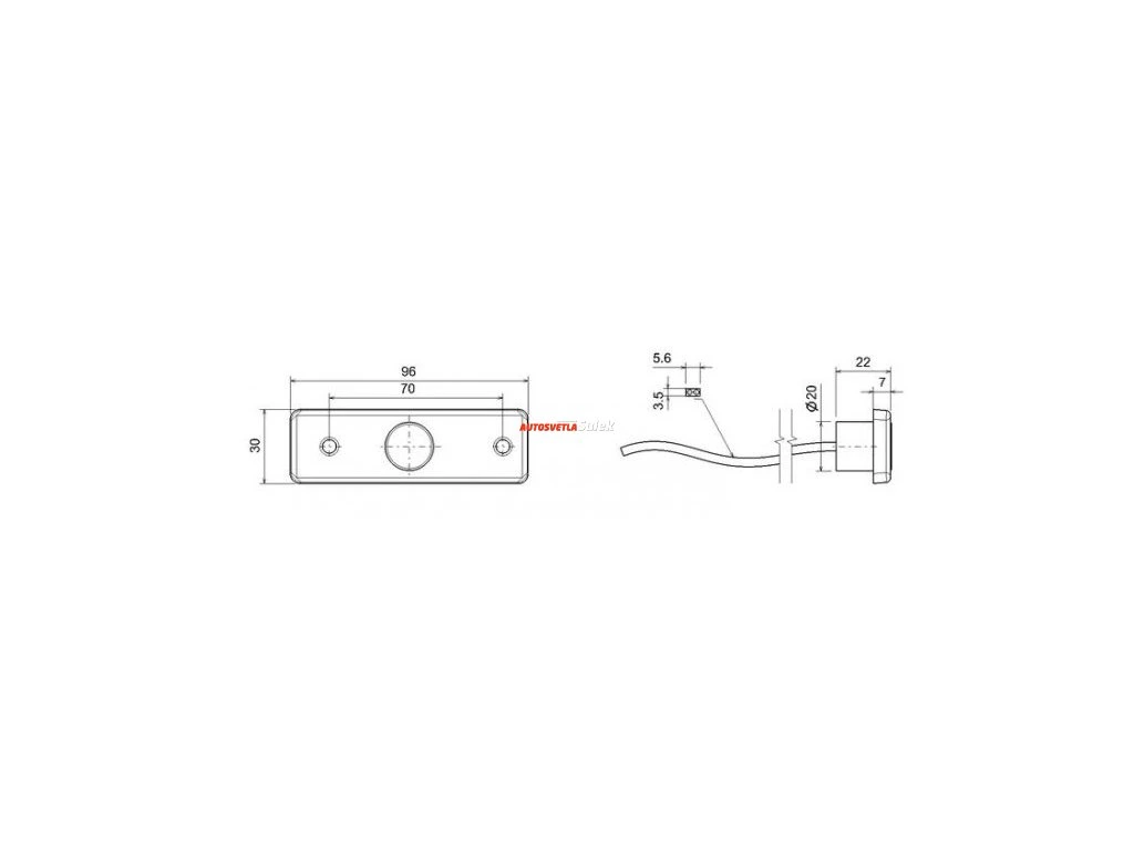 Pozička LED, rozměry 96x30 mm, rozteč 70mm, univerzální použití